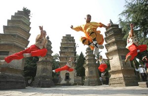 Students of Songshan Shaolin Wushu Vocational School (SSWVS) perform exercises in the Tower Forest at the Shaolin Temple in Dengfeng, central China’s Henan Province. About 13,000 students from all over the world pursue their Wushu, or Kongfu, education in SSWVS, the first Wushu school offering higher education in China. The school, known as cradle of wushu champions, has cultivated many students with the winning of 3,381 medals, including 1,554 golden ones in both national and international competitions in its 25-year history of establishment. (Photo by: Sovfoto/UIG via Getty Images)